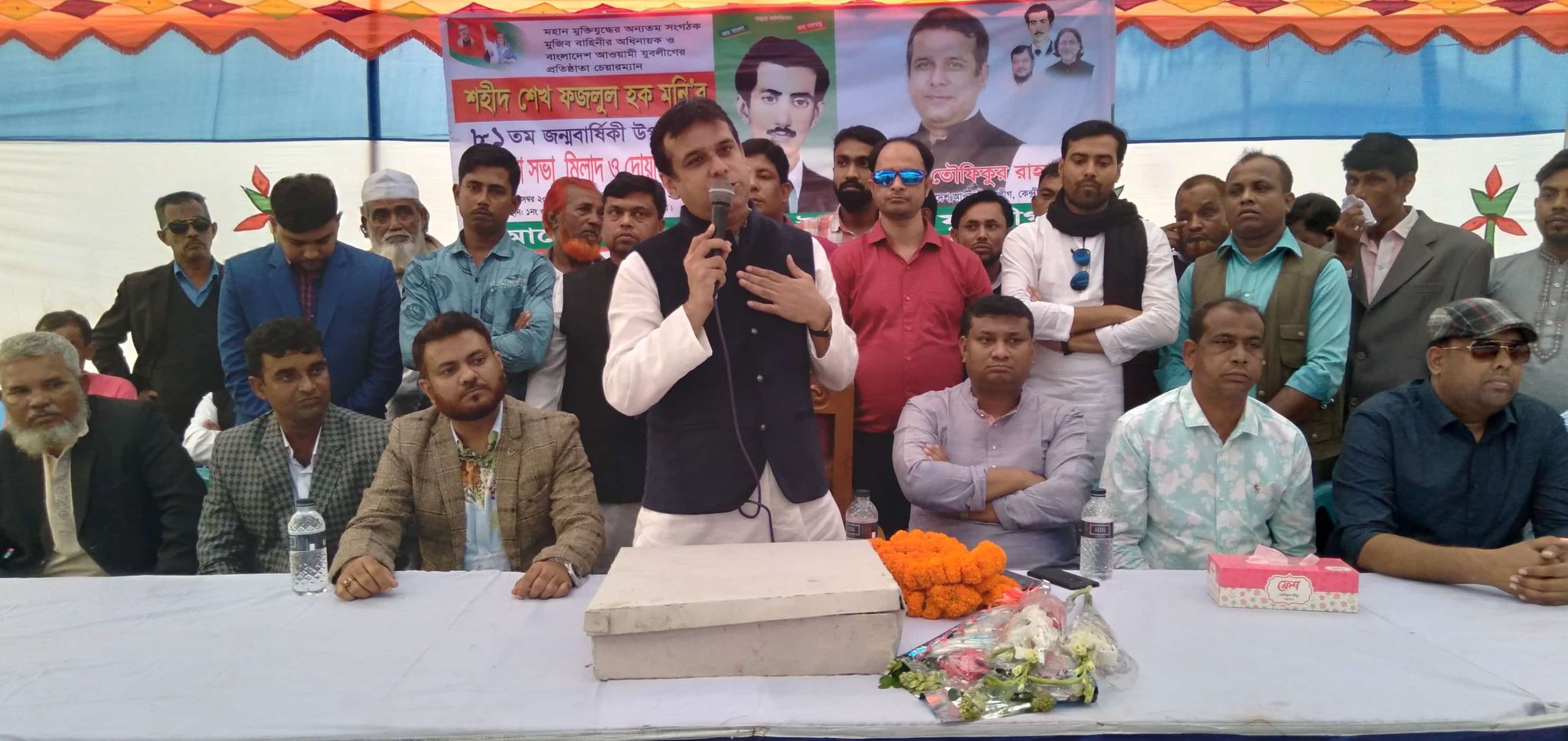 নিজস্ব প্রতিবেদক: মহান মুক্তিযুদ্ধের অন্যতম সংগঠক মুজিব বাহিনীর অধিনায়ক ও বাংলাদেশ আওয়ামী যুবলীগের প্রতিষ্ঠাতা চেয়ারম্যান শহীদ শেখ ফজলুল হক মনি'র ৮১তম জন্মবার্ষিকী পালন করা হয়েছে। এ উপলক্ষে রায়পুরা উপজেলা শ্রীনগর ইউনিয়ন যুবলীগের আয়োজনে আলোচনা সভা,মিলাদ ও দোয়া মাহফিল অনুষ্ঠিত হয়। এতে প্রধান অতিথি হিসেবে উপস্থিত ছিলেন বঙ্গবন্ধুর দৌহিত্র নরসিংদীর রায়পুরা উপজেলার কৃতিসন্তান বাংলাদেশ আওয়ামী যুবলীগের কেন্দ্রীয় কার্যনির্বাহী কমিটি সদস্য ব্যারিষ্টার তৌফিকুর রহমান।