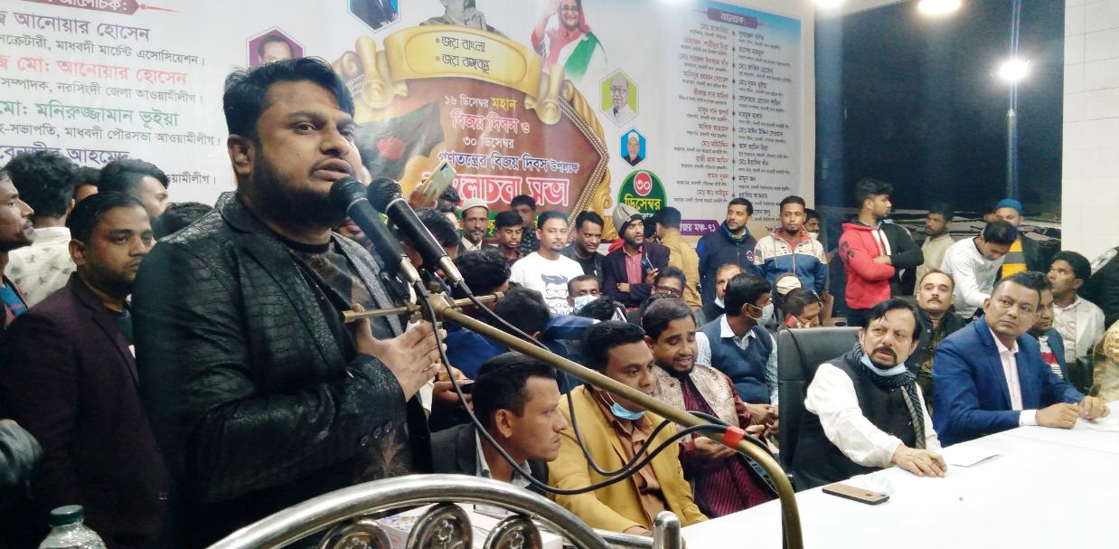 নরসিংদী সদর উপজেলার মাধবদীতে‘গণতন্ত্রের বিজয়’দিবস উদযাপন করা হয়েছে। বুধবার রাতে মাধবদী মুক্তিযোদ্ধা সংসদস্থ বিজয় মঞ্চ-৭১ এর মঞ্চে মাধবদী থানা ও শহর আওয়ামী লীগের উদ্যোগে ১৬ ডিসেম্বর মহান বিজয় দিবস ও ৩০ ডিসেম্বর গণতন্ত্রের বিজয় দিবস উপলক্ষে এ আলোচনা সভা অনুষ্ঠিত।