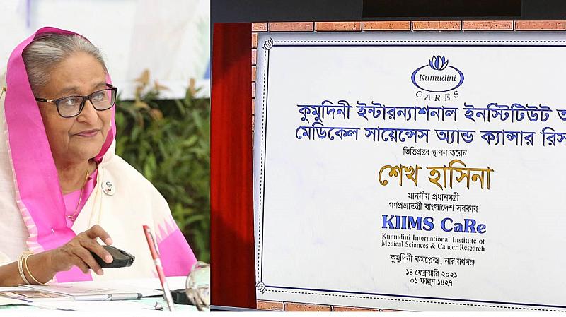 প্রধানমন্ত্রী রোববার (১৪ ফেব্রুয়ারি) সকালে ‘কুমুদিনী ইন্টারন্যাশনাল ইনস্টিটিউট অব মেডিক্যাল সাইন্স এন্ড ক্যান্সার রিসার্চ’ নামে নারায়ণগঞ্জে একটি ক্যান্সার রিসার্চ সেন্টার ও হাসপাতালের ভিত্তিপ্রস্তর স্থাপন অনুষ্ঠানে প্রধান অতিথির বক্তব্যে একথা বলেন। তিনি গণভবন থেকে ভিডিও কনফারেন্সের মাধ্যমে কুমুদিনী কমপ্লেক্স নারায়ণগঞ্জে অনুষ্ঠিত মূল অনুষ্ঠানে সঙ্গে যুক্ত হন।