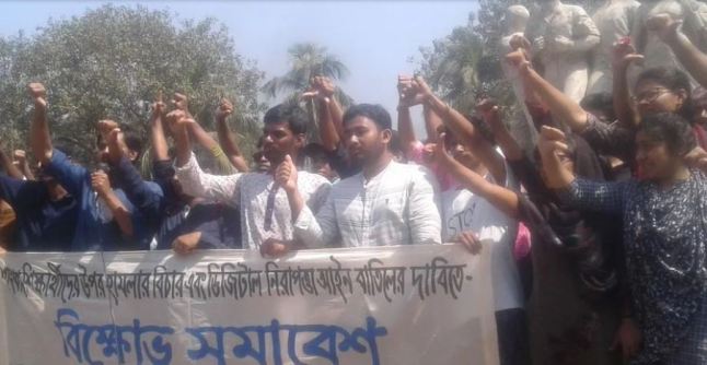 ডিজিটাল নিরাপত্তা আইনে আটক অবস্থায় লেখক মুশতাক আহমেদের মত্যুর প্রতিবাদ কর্মসূচিতে পুলিশের হামলায় জড়িতদের বিচার দাবি এবং আইনটি বাতিলের দাবি জানিয়েছে বাংলাদেশ ছাত্র ফেডারেশন। সেসময় তারা আইনটি বাতিল ঘোষণা করে এর প্রতি ‘বৃদ্ধাঙ্গুলি’ প্রদর্শন করেন। শনিবার সকাল সোয়া ১১টায় ঢাকা বিশ্ববিদ্যালয়ের রাজু ভাস্কর্যের সামনে আয়োজিত এক বিক্ষোভ সমাবেশে এসব দাবি জানান ফেডারশেনের নেতারা।