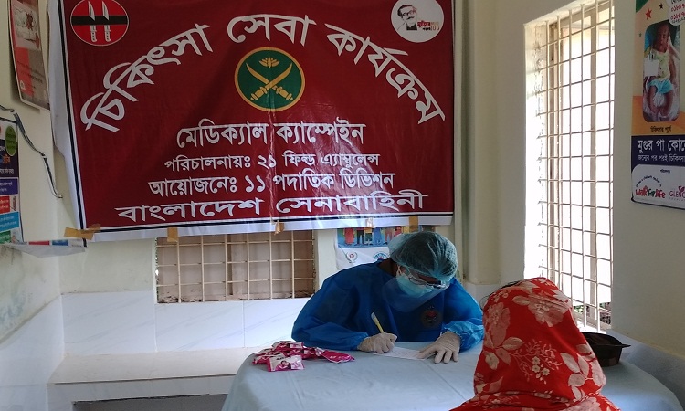 মেডিকেল ক্যাম্পে ১১ পদাতিক ডিভিশনের ২১ ফিল্ড অ্যাম্বুলেন্স- এর চিকিৎসক দল এলাকার অসহায় ও দরিদ্র রোগীদের বিনা মূল্যে চিকিৎসাসেবা দেন।