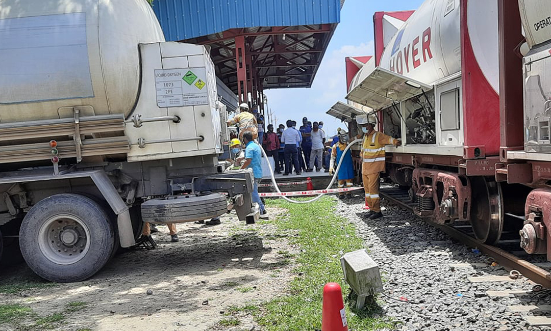 আনলোড হচ্ছে ভারত থেকে আসা ২০০ টন অক্সিজেন