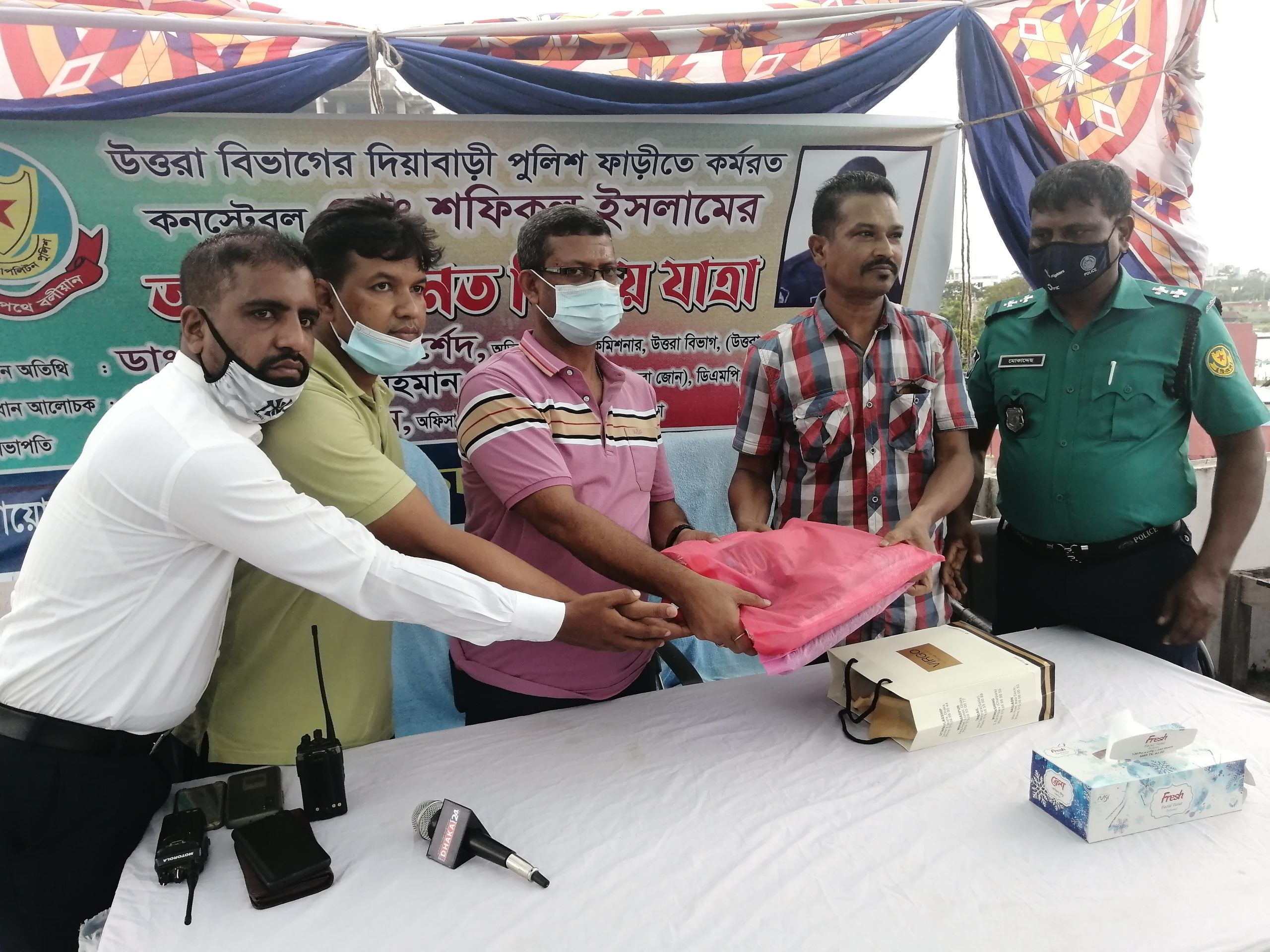 অনুষ্ঠান শেষে পুলিশ কনস্টেবল সফিকুল ইসলাম কে ফুলের মালা পরিয়ে তুরাগ থানার অফিসার ইনচার্জের সজ্জিত গাড়িতে চড়িয়ে তাকে বিদায় জানান হয়।