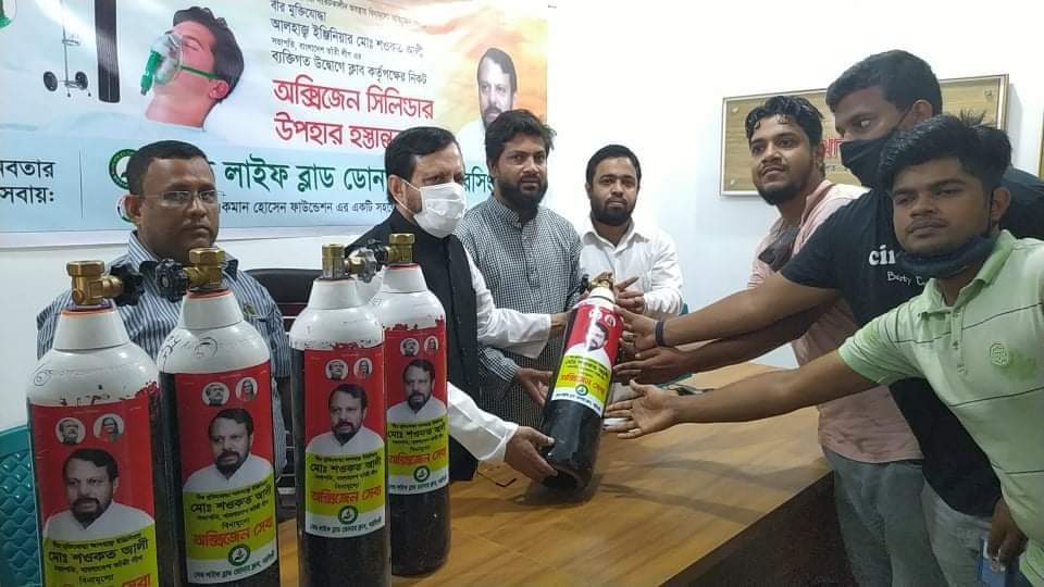 অসহায় করোনা রোগীদেরকে বিনামূল্যে জরুরী অক্সিজেন সেবা দেয়ার লক্ষ্যে নরসিংদীর স্বেচ্ছাসেবী সংগঠন সেভ লাইফ ব্লাড ডোনার ক্লাবকে ৬টি অক্সিজেন সিলিন্ডার প্রদান করেছেন বাংলাদেশ তাঁতী লীগের কেন্দ্রীয় কমিটির সভাপতি মুক্তিযোদ্ধা আলহাজ্ব ইঞ্জিনিয়ার মোঃ শওকত আলী। সোমবার (১৬ আগস্ট) দুপুরে মাধবদী থানা প্রেস ক্লাব কার্যালয়ে আনুষ্ঠানিকভাবে সেভ লাইফ ব্লাড ডোনার ক্লাব কর্মকর্তাদের কাছে এগুলো হস্তান্তর করা হয়।