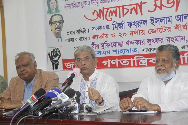 মির্জা ফখরুল বলেন, খুব পরিষ্কার করে বলেছি, ছোটখাটো বিষয় নিয়ে ভেবে লাভ নাই। এসব কিছুর মূলে হচ্ছে সরকার। সব কিছুর মুলে শেখ হাসিনা। তাদের উদ্দেশ্য একটাই, এখানে আর কেউ রাজনীতি করবে না, তারা বি-রাজনীতির মধ্য দিয়ে ক্ষমতা দখল করে বসে থাকবে। দেশের সমস্ত সম্পদ লুন্ঠন করে বিদেশে পাচার করবে।