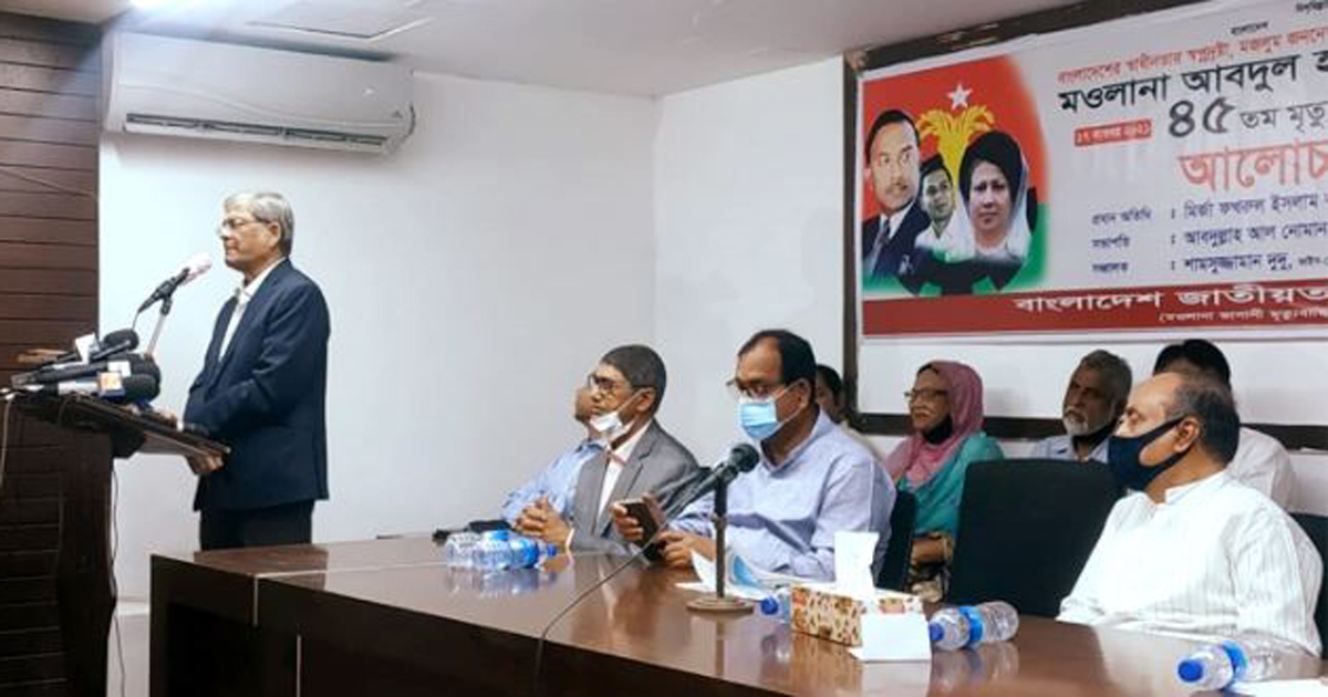সরকারের উদ্দেশ্যে বিএনপি মহাসচিব মির্জা ফখরুল ইসলাম আলমগীর বলেছেন, ‘অবিলম্বে বেগম খালেদা জিয়াকে উন্নত চিকিৎসার জন্য বিদেশে পাঠানের ব্যবস্থা করুন। তার জীবন রক্ষা করুন।’ বৃহস্পতিবার (১৮ নভেম্বর) জাতীয় প্রেস ক্লাবে এক আলোচনা সভায় তিনি এসব কথা বলেন। মওলানা আবদুল হামিদ খান ভাসানীর ৪৫তম মৃত্যুবার্ষিকী উপলক্ষে এই আলোচনা সভার আয়োজন করা হয়।