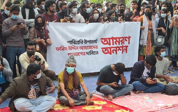 The students, including nine females, began the strike at 2:50 pm as Vice-Chancellor Farid Uddin Ahmed did not step down by noon despite students' ultimatum.