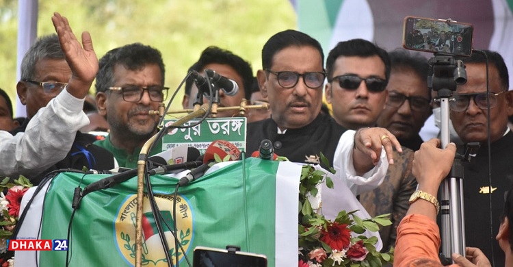 Awami League General Secretary Obaidul Quader speaks at the triennial conference of Jhenaidah District Awami League held on Jhenaidah Water Development Board ground on Sunday afternoon.