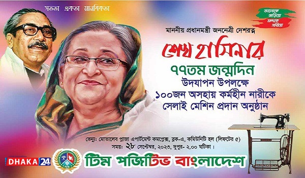 প্রধানমন্ত্রীর ৭৭তম জন্মদিনে ১০০ সেলাই মেশিন বিতরণ করবে টিম পজিটিভ বাংলাদেশ