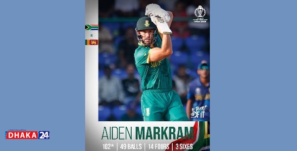 আগে বোলিং নেওয়াটাই যেন কাল হল শ্রীলঙ্কার। ব্যাট করতে নেমে বিশ্বকাপের একাধিক রেকর্ড ভেঙে তিন ব্যাটারের শতকে নির্ধারিত ৫০ ওভারে ৫ উইকেট হারিয়ে ৪২৮ রান সংগ্রহ করেছে দক্ষিণ আফ্রিকা। সেই সঙ্গে বিশ্বকাপের ইতিহাসে দ্রুততম শতক হাঁকিয়ে রেকর্ডবুকে নিজের নাম লিখিয়েছেন এইডেন মার্কারাম।
