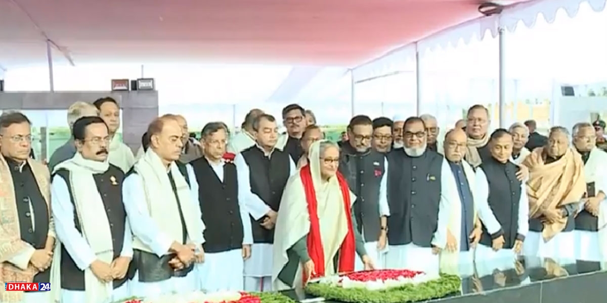 বঙ্গবন্ধুর প্রতিকৃতিতে প্রধানমন্ত্রী ও নতুন মন্ত্রিসভার শ্রদ্ধা