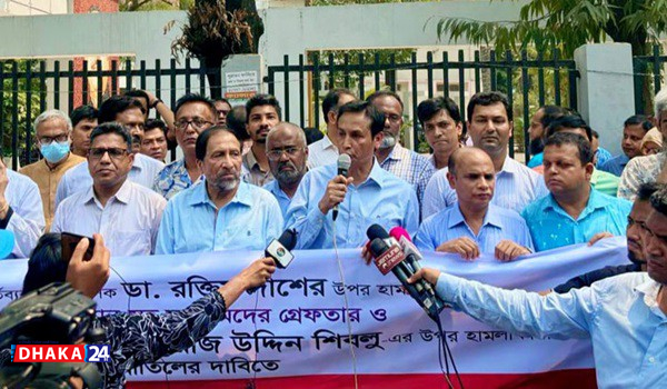 চিকিৎসকের উপর হামলার বিচারের দাবিতে সমাবেশ