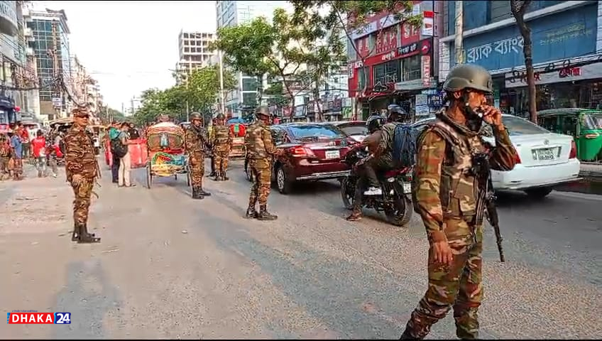 সড়কে আইনশৃঙ্খলা পরিস্থিতি স্বাভাবিক রাখতে উত্তরায় যৌথ বাহিনীর অভিযান পরিচালনা করা হয়।