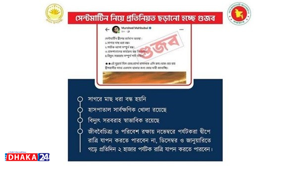 মোরশেদ মাহবুবুল নামের ওই ব্যক্তি তার পোস্টে দাবি করেন, ‘সেন্ট মার্টিন দ্বীপের বর্তমান অবস্থা: ১. সাগরে মাছ ধরা বন্ধ; ২. পর্যটক আসা সম্পূর্ণ বন্ধ; ৩. হাসপাতালের কার্যক্রম বন্ধ তিন মাস; ৪. বিদ্যুৎ সরবরাহ সম্পূর্ণ শাটডাউন। ’