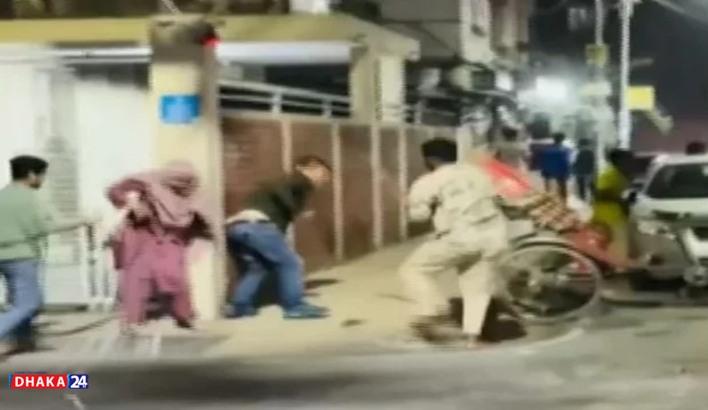 ভিডিওতে আরো দেখা যায়, সাদা ও জলপাই রঙের শার্ট পরিহিত দুই যুবক একজন ভুক্তভোগী পুরুষ ও তার সঙ্গে থাকা এক নারী পথচারীকে রামদা দিয়ে কোপাচ্ছে।