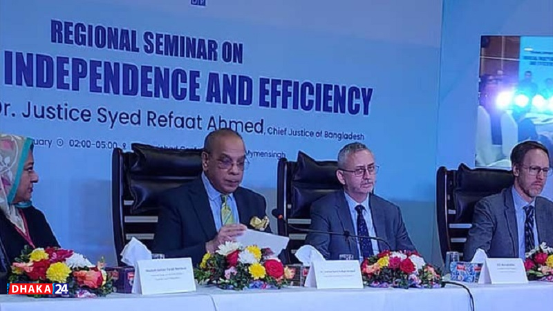 শনিবার দুপুরে ময়মনসিংহ জেলা পরিষদ মিলনায়তনে ‘জুডিশিয়াল ইনডিপেনডেন্স অ্যান্ড এফিসিয়েন্সি ইন বাংলাদেশ’ শীর্ষক আঞ্চলিক সেমিনারে তিনি এ কথা বলেন। সুপ্রিম কোর্ট ও জাতিসংঘ উন্নয়ন কর্মসূচি (ইউএনডিপি) এ সেমিনারের আয়োজন করে।