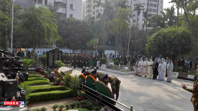 মঙ্গলবার সকাল ৯টায় বনানীর সামরিক কবরস্থানে শায়িত পিলখানায় শহিদ সামরিক কর্মকর্তা ও সদস্যদের কবরে পুষ্পস্তবক অর্পণ করেন তিনি। স্বরাষ্ট্র উপদেষ্টার পর সেনা, নৌ ও বিমান বাহিনীর প্রধানরা পুষ্পস্তবক অর্পণ করেন।