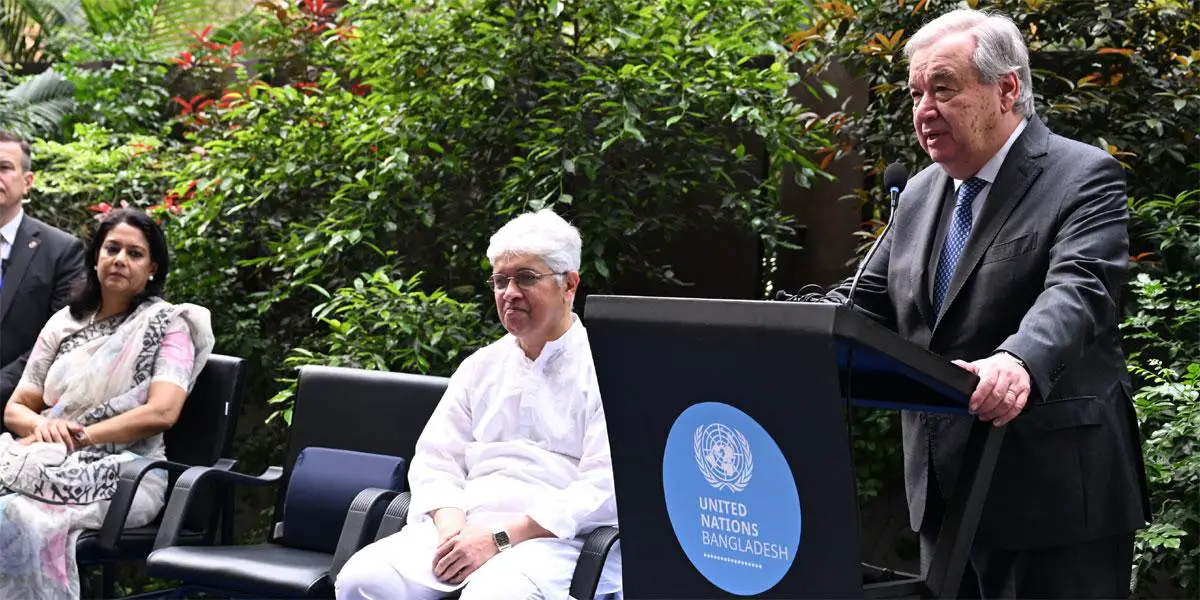 রাজধানীর গুলশানে জাতিসংঘের নতুন ভবনে এক অনুষ্ঠানে বক্তব্য রাখছেন জাতিসংঘের মহাসচিব আন্তোনিও গুতেরেস