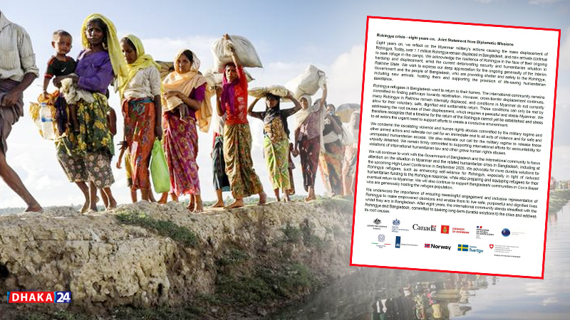 Today (August 25) marks eight years since the Rohingyas fled Myanmar's Rakhine state to seek refuge in Bangladesh. The humanitarian crisis for the Rohingya has deepened over the long period. In this context, Western countries Australia, Italy, the United Kingdom, Canada, the Netherlands, Norway, Denmark, Sweden, France, Switzerland and Finland have jointly pledged to stand by Bangladesh.