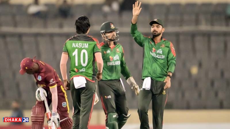 West Indies lost three quick wickets to fall to 82 for 3. Bangladesh capitalized on this collapse to restrict the visitors, ultimately setting the Tigers a challenging, but achievable, target of 166 runs to take the series lead.