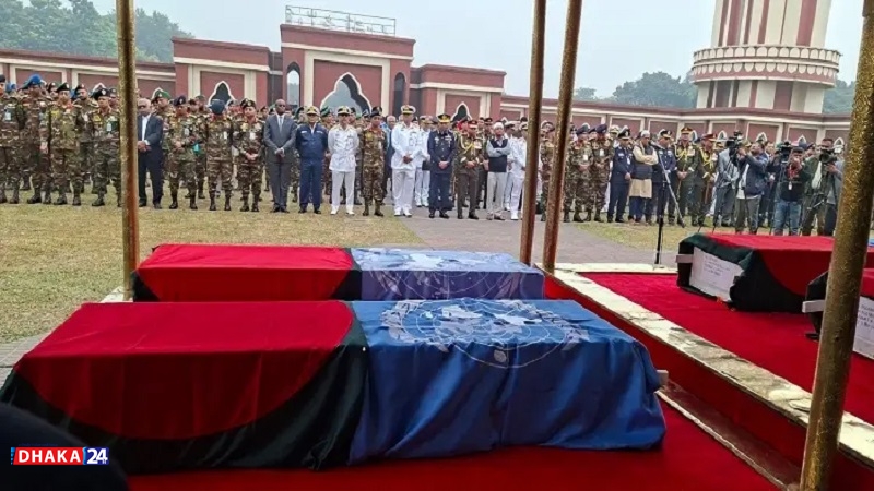 Earlier, the bodies of the six peacekeepers who were killed in the fighting reached Dhaka at 11:05 am on Saturday. Bangladesh Army Chief of General Staff Lieutenant General Mizanur Rahman Shamim received the bodies of the peacekeepers at the airport. At this time, everyone stood and observed a minute of silence and saluted in respect.