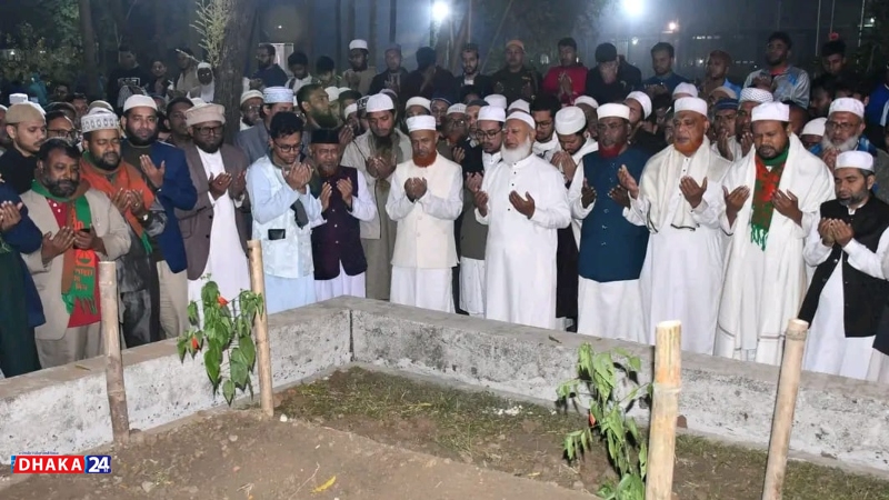 Bangladesh Jamaat-e-Islami has paid tribute at the grave of the late Shahid Sharif Osman Hadi, former spokesperson of the Inqilab Manch. On Sunday morning, after offering the Fajr prayer at the Central Jame Mosque of Dhaka University, Jamaat Ameer Dr Shafiqur Rahman visited the grave along with party leaders and activists.