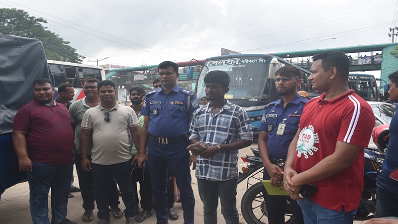 মানিকগঞ্জ বাসস্ট্যান্ড এলাকায় যাত্রীবাহী বাস থেকে জোরপূর্বক চাঁদা আদায়ের সময় মাসুদ নামে এক যুবককে আটক করেছে পুলিশ। মঙ্গলবার (১৬ জুলাই) দুপুরে গোপন সংবাদের ভিত্তিতে অভিযান চালিয়ে তাকে হাতেনাতে আটক করা